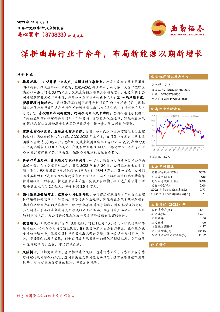 西南证券:美心翼申(873833)-深耕曲轴行业十余年,布局新能源以期新增长.pdf
