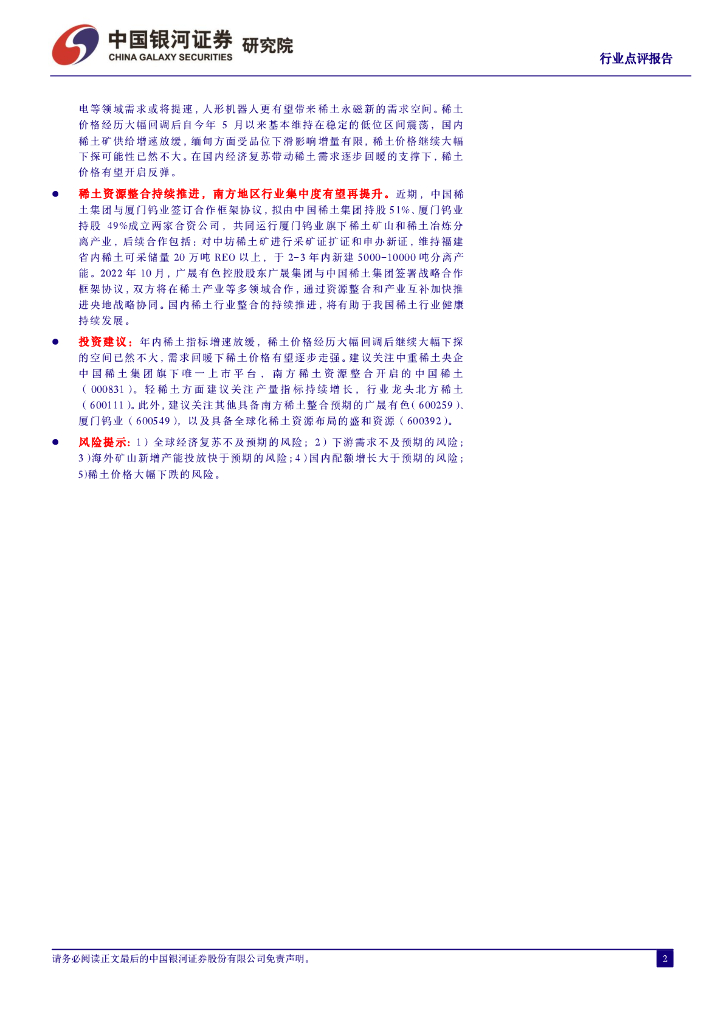 中国银河:有色金属行业点评报告:第二批稀土开采指标增速放缓,供需格局改善稀土价格有望转强.pdf
