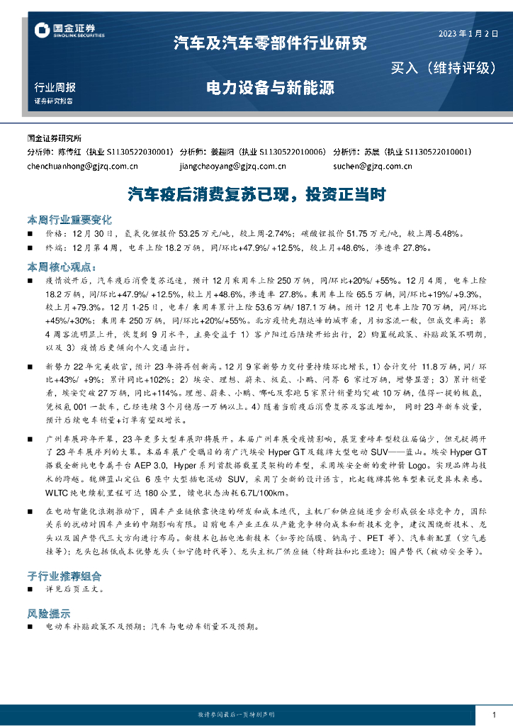 国金证券:电力设备与新能源行业周报:汽车疫后消费复苏已现,投资正当时.pdf