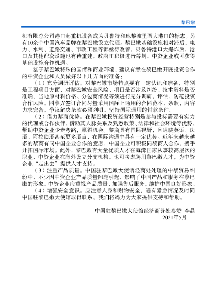 商务部:对外投资合作国别(地区)指南:黎巴嫩(2021年版).pdf