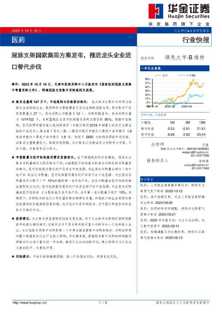 华金证券:医药行业快报:冠脉支架国家集采方案发布,推进龙头企业进口替代步伐.pdf