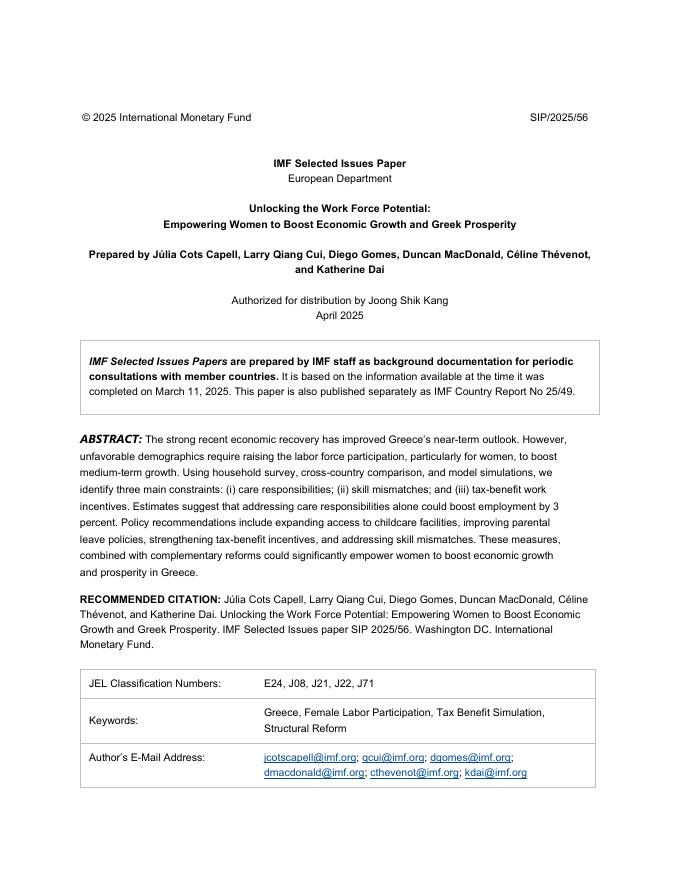 国际货币基金组织:释放劳动力潜力:赋权女性以促进经济增长和希腊繁荣(英文版).pdf