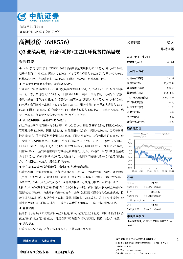 中航证券:高测股份(688556)-Q3业绩高增,设备+耗材+工艺闭环优势持续显现.pdf