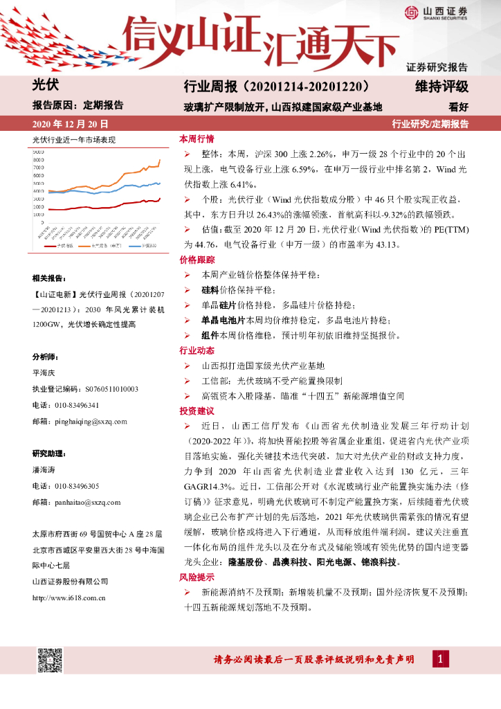 山西证券:光伏行业周报:玻璃扩产限制放开,山西拟建国家级产业基地.pdf