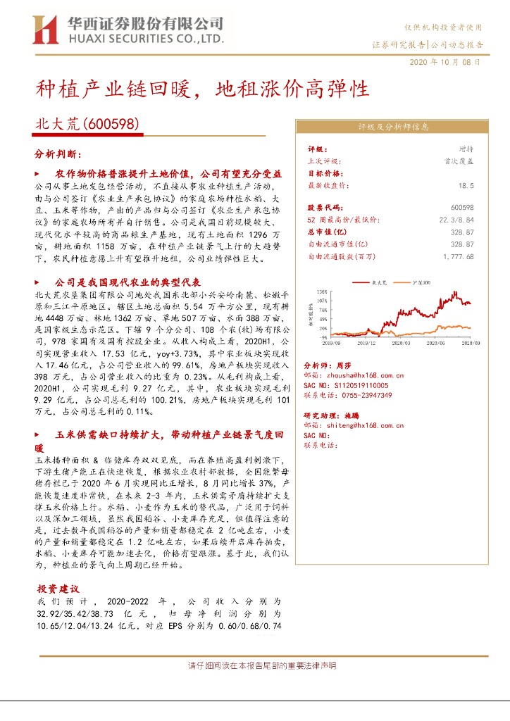 华西证券:北大荒(600598)-种植产业链回暖,地租涨价高弹性.pdf