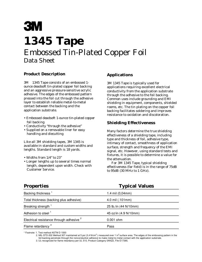 3M 1345 Tape Embossed Tin-Plated Copper Foil 数据手册.pdf
