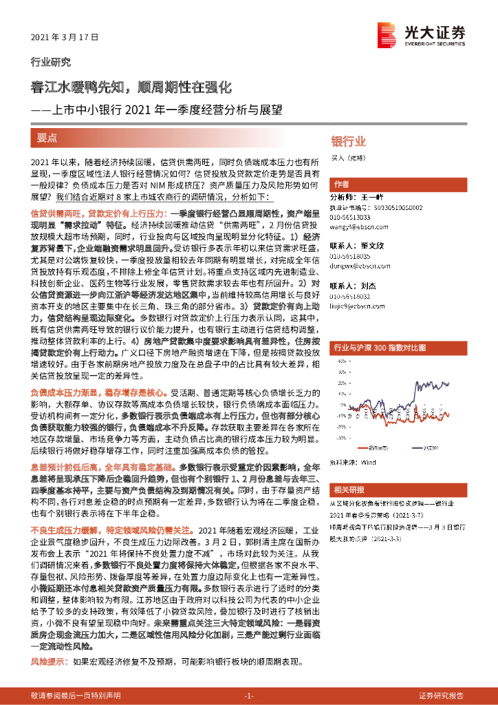 光大证券:上市中小银行2021年一季度经营分析与展望:春江水暖鸭先知,顺周期性在强化.pdf