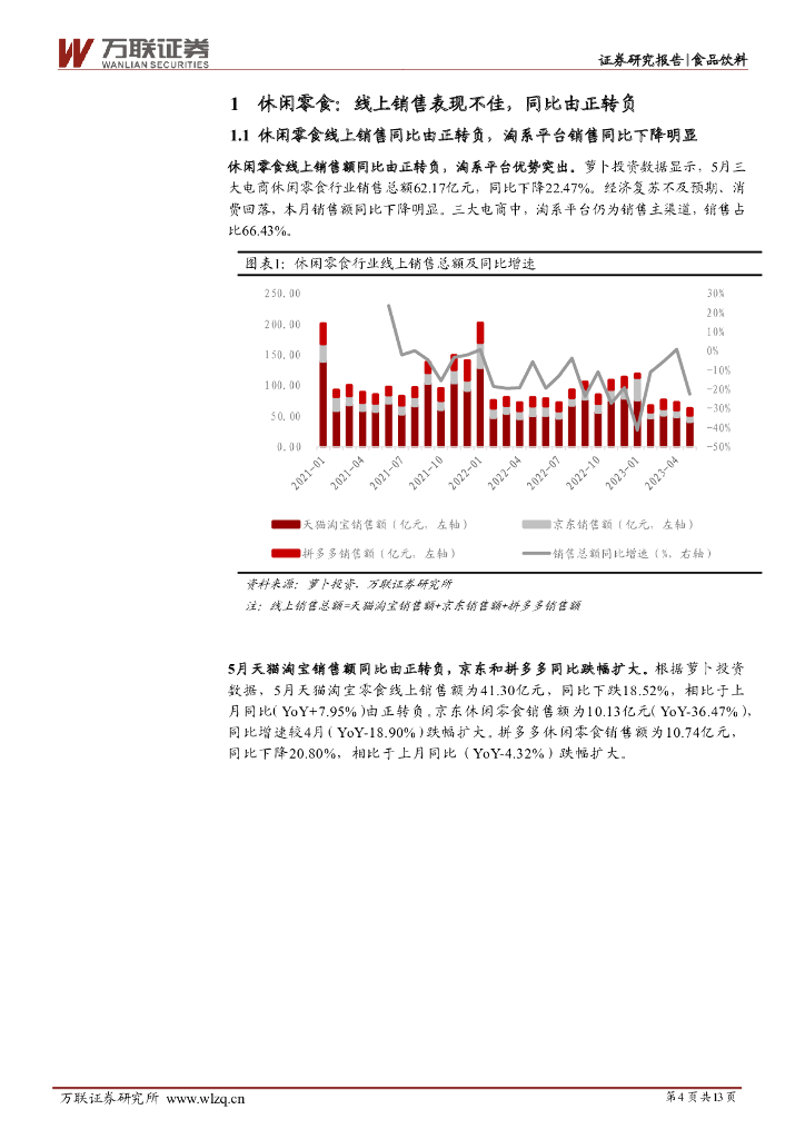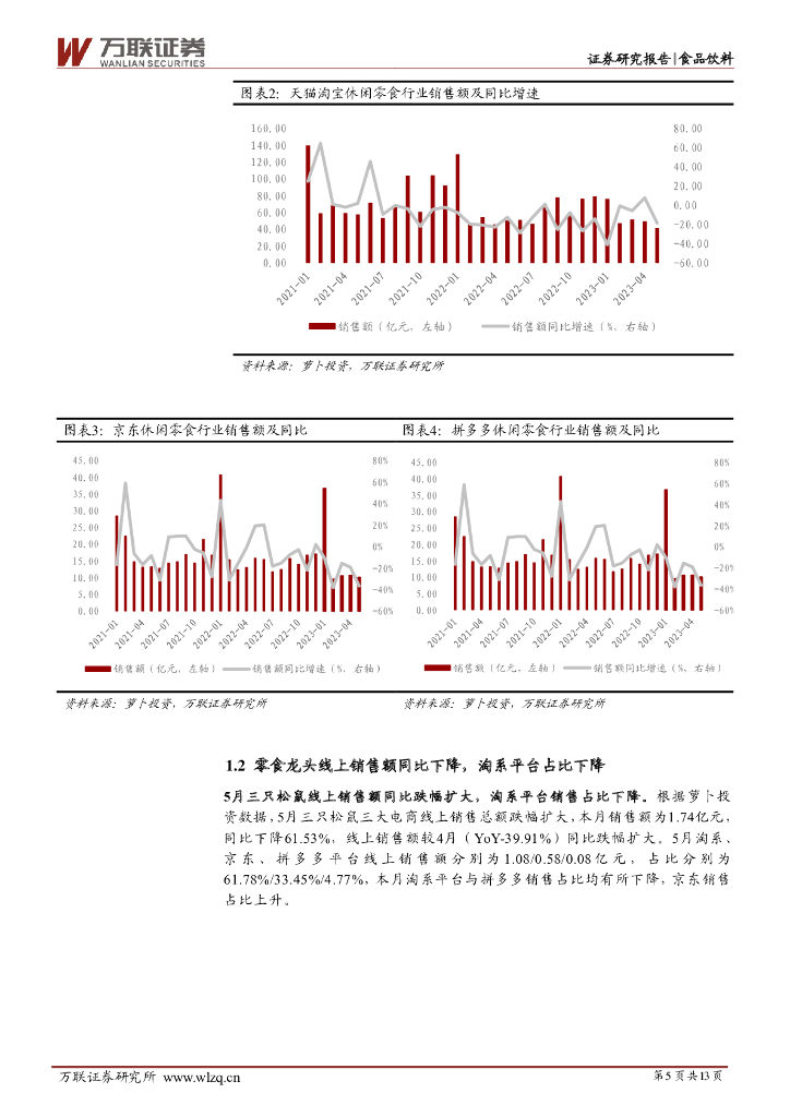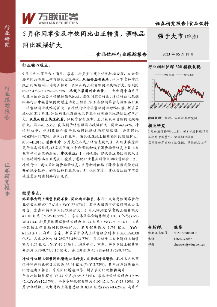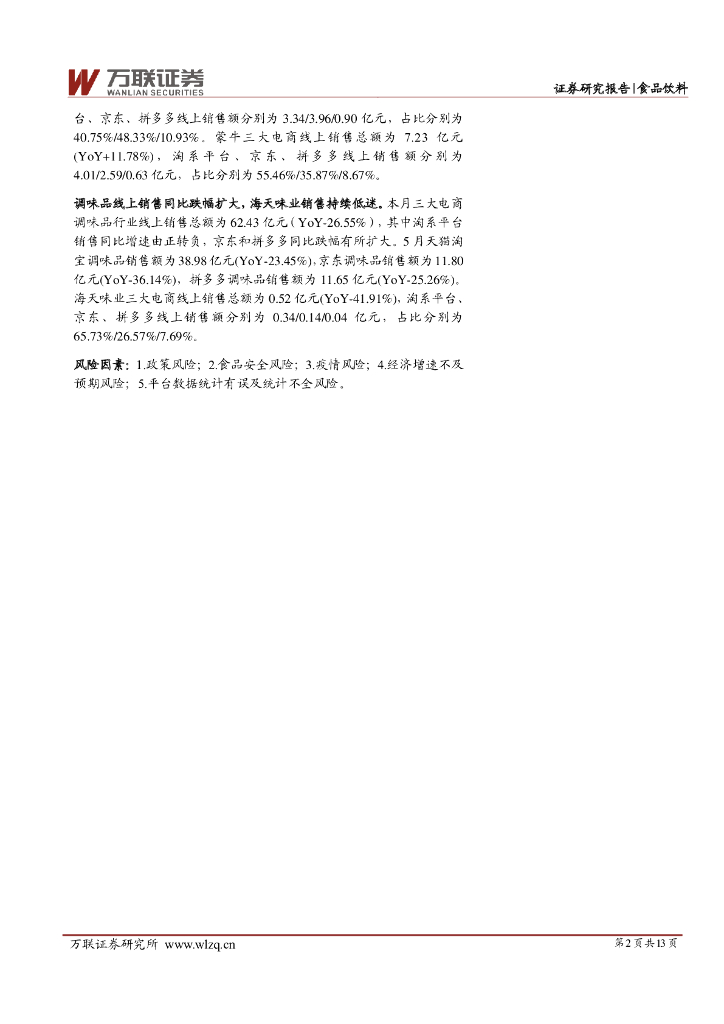 万联证券:食品饮料行业跟踪报告:5月休闲零食及冲饮同比由正转负,调味品同比跌幅扩大.pdf