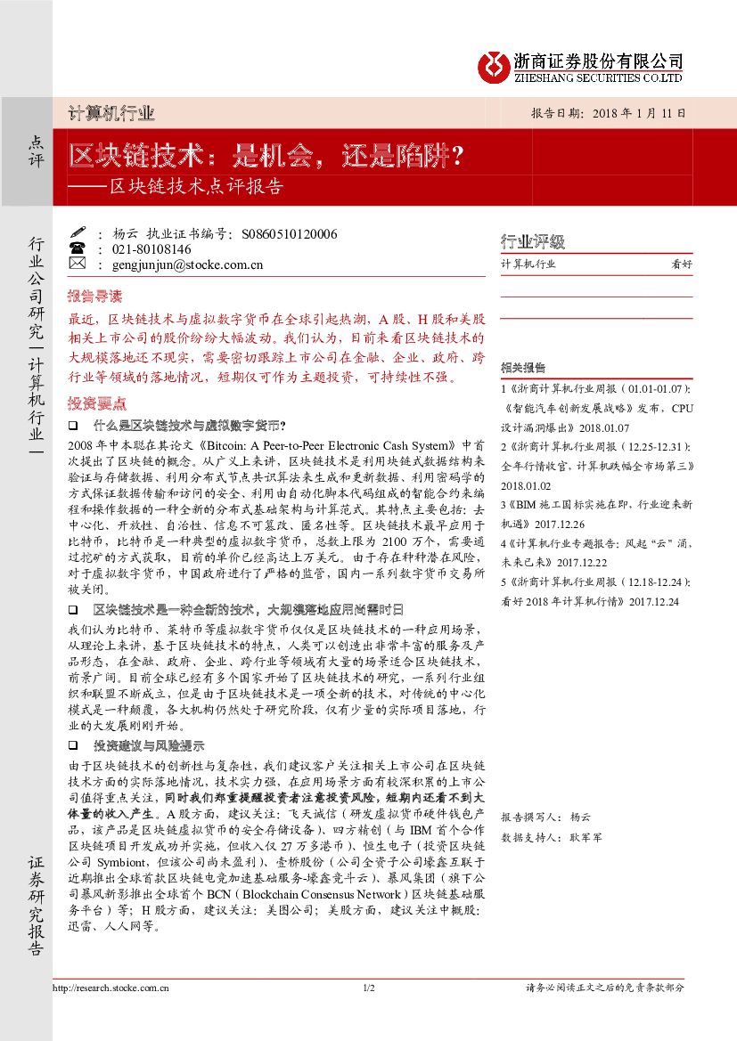 浙商证券:计算机行业:区块链技术点评报告:区块链技术:是机会,还是陷阱?.pdf