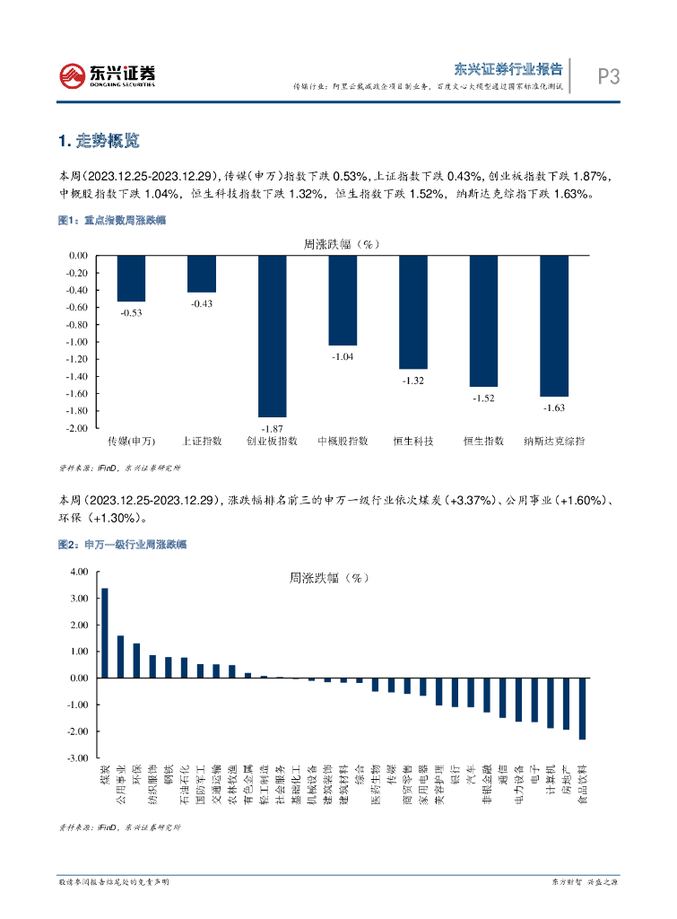 东兴证券:传媒行业:阿里云裁减政企项目制业务,百度文心大模型通过国家标准化测试.pdf