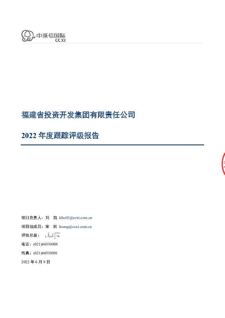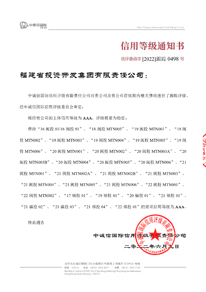 中诚信:福建省投资开发集团有限责任公司2022年度跟踪评级报告.pdf