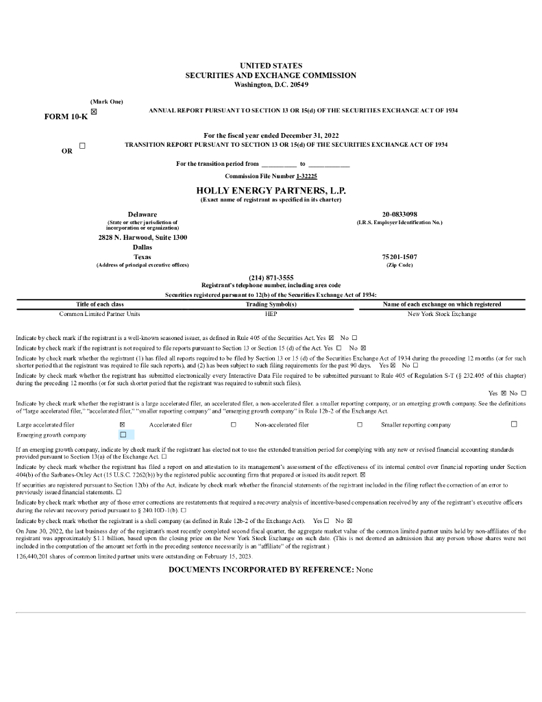 Holly Energy Partners L.P.(HEP)2022财年年度报告(英文版).pdf
