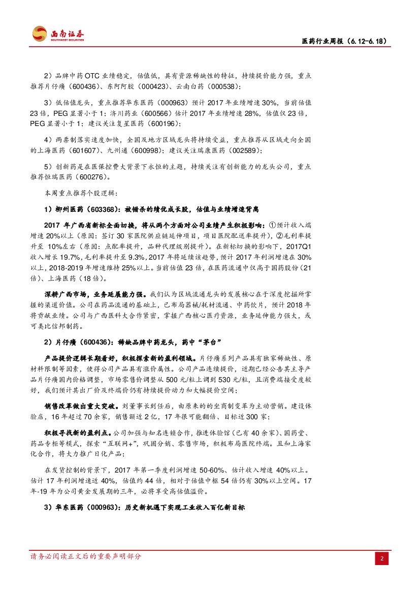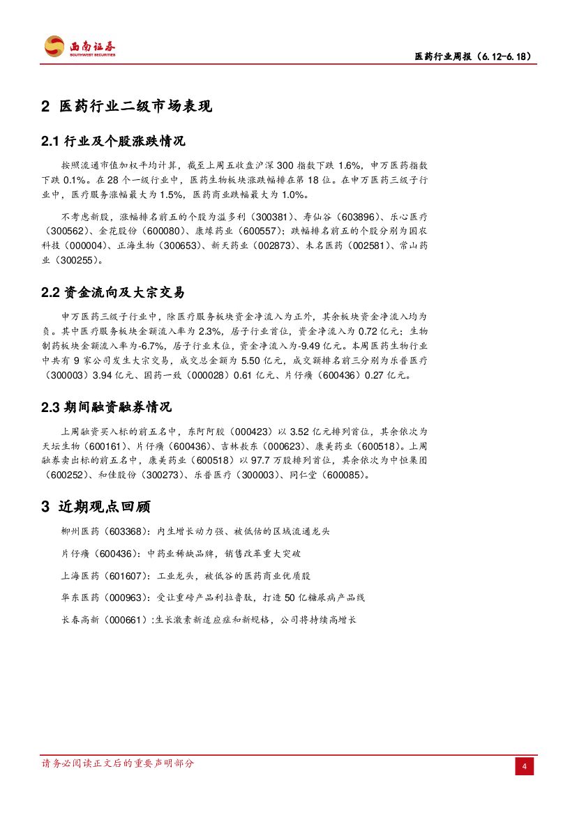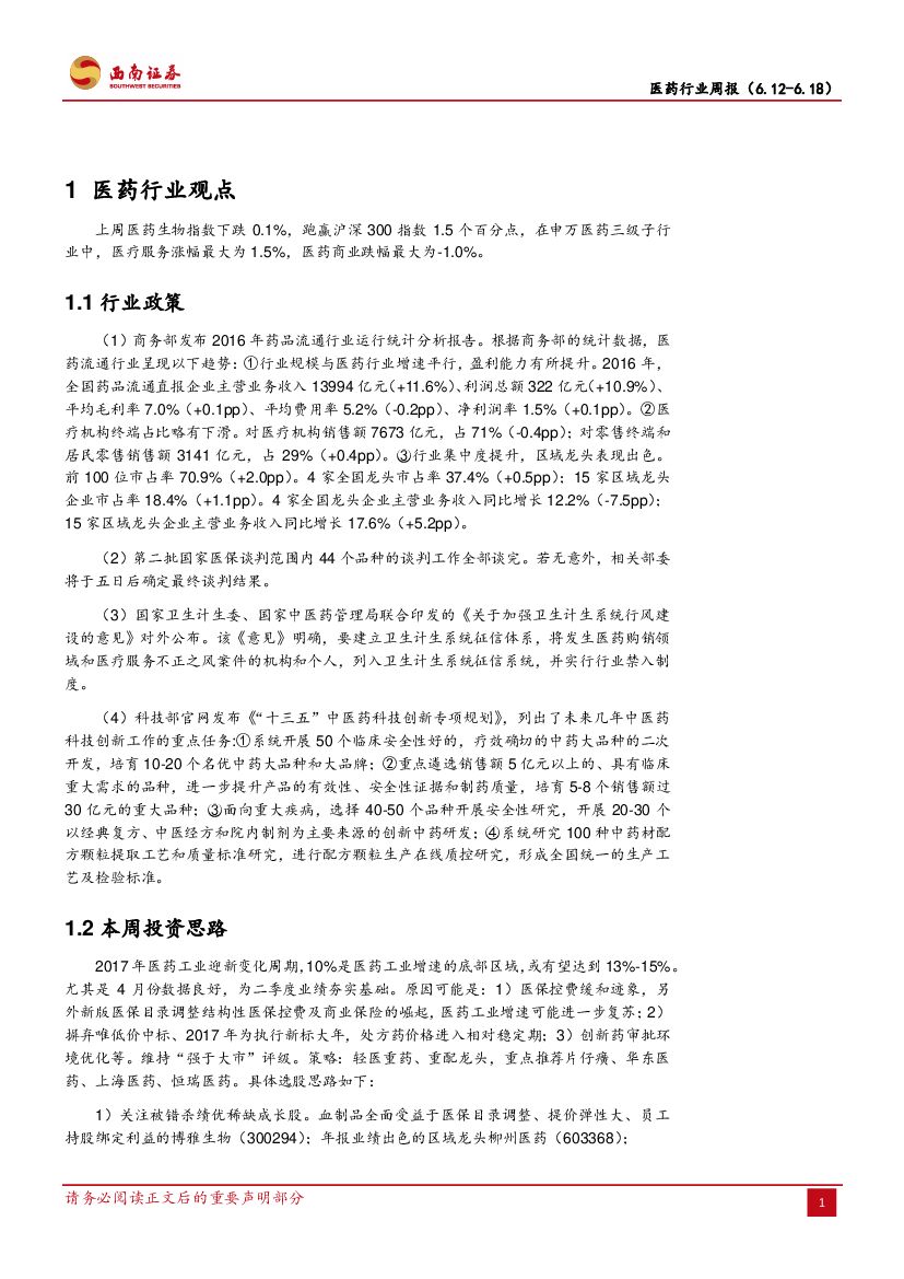 西南证券:医药行业周报:持续看好行业龙头与优质成长股,重点推荐上海医药、华东医药、柳州医药等.pdf