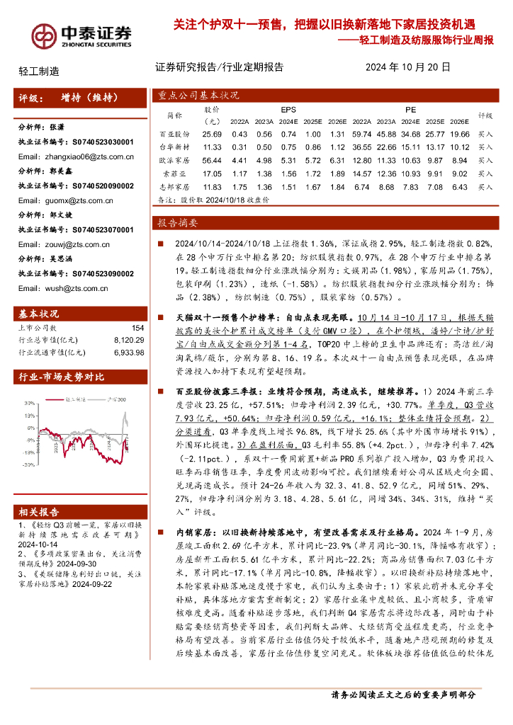 中泰证券:轻工制造及纺服服饰行业周报:关注个护双十一预售,把握以旧换新落地下家居投资机遇.pdf