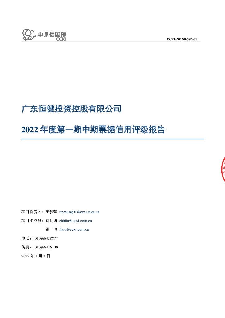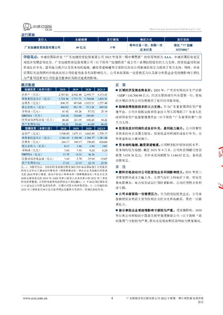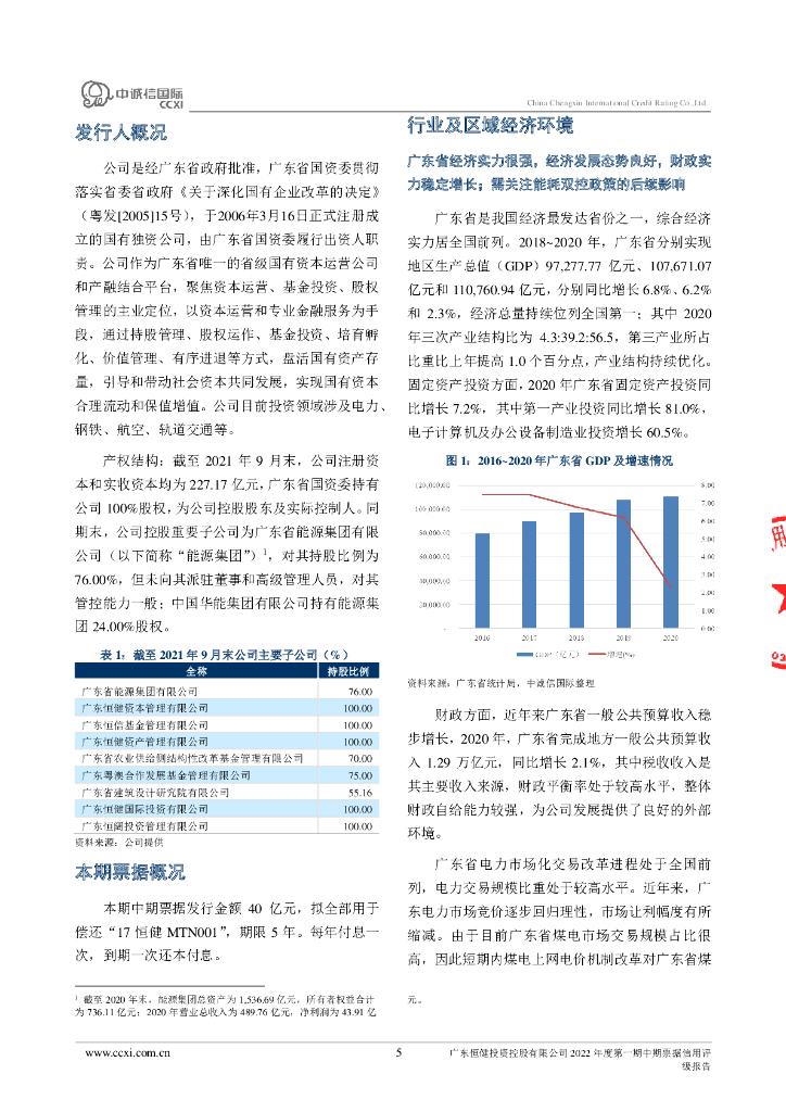 中诚信:广东恒健投资控股有限公司2022年度第一期中期票据信用评级报告及跟踪评级安排.pdf
